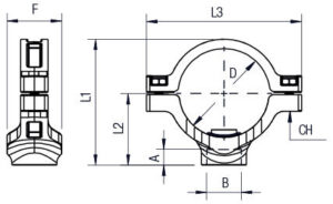 | Varenummer | D | B | A | F | L1 | L2 | L3 | CH | Pakke str. |