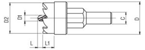 | Varenummer | Ø | C | D | D1 | D2 | L | L1 | Pakke str. |