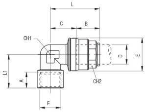 | Varenummer | D | F | A | B | C | E | L | L1 | CH | CH1 | Pakke str. |