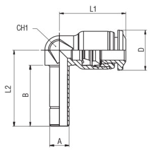 | Varenummer | Ø | A | B | L1 | L2 | CH1 | D | Pakkestr. |